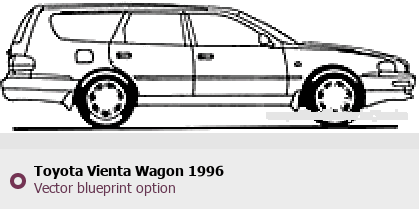 Raster blueprint of the 1996 Toyota Vienta Wagon Wagon. This free downloadable image can be used for graphic projects, digital design, and 3D modeling. The file provides accurate exterior proportions of the vehicle. Model year: 1996. Body type: Wagon.