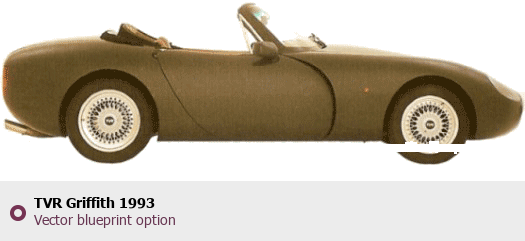 Raster blueprint of the 1993 TVR Griffith Tag. This free downloadable image can be used for graphic projects, digital design, and 3D modeling. The file provides accurate exterior proportions of the vehicle. Model year: 1993. Body type: Tag.