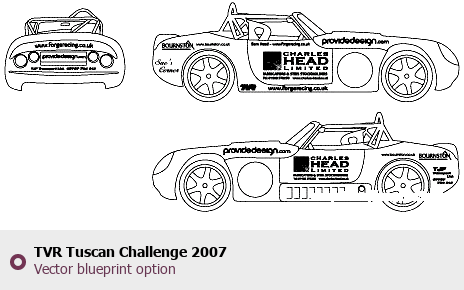 Raster blueprint of the 2007 TVR Tuscan Challenge Tag. This free downloadable image can be used for graphic projects, digital design, and 3D modeling. The file provides accurate exterior proportions of the vehicle. Model year: 2007. Body type: Tag.