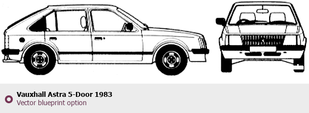 Raster blueprint of the 1983 Vauxhall Astra 5-Door Tag. This free downloadable image can be used for graphic projects, digital design, and 3D modeling. The file provides accurate exterior proportions of the vehicle. Model year: 1983. Body type: Tag.