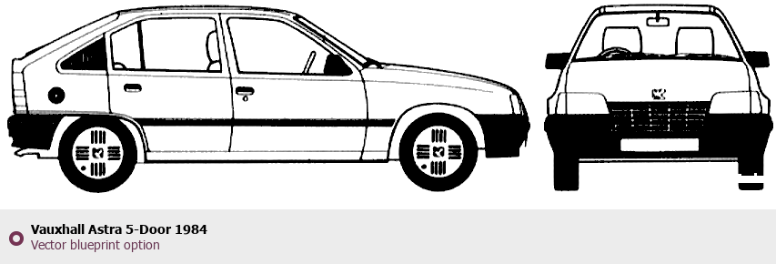 Raster blueprint of the 1984 Vauxhall Astra 5-Door Tag. This free downloadable image can be used for graphic projects, digital design, and 3D modeling. The file provides accurate exterior proportions of the vehicle. Model year: 1984. Body type: Tag.
