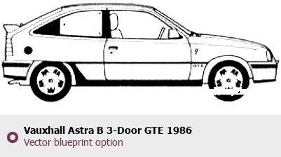 Raster blueprint of the 1986 Vauxhall Astra B 3-Door GTE Tag. This free downloadable image can be used for graphic projects, digital design, and 3D modeling. The file provides accurate exterior proportions of the vehicle. Model year: 1986. Body type: Tag.