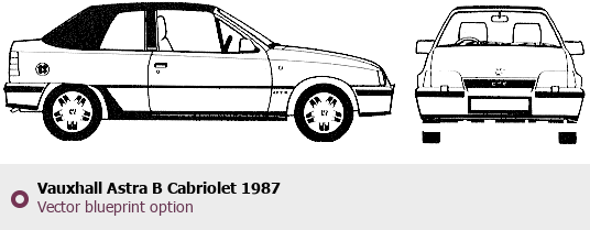 Raster blueprint of the 1987 Vauxhall Astra B Cabriolet Cabriolet. This free downloadable image can be used for graphic projects, digital design, and 3D modeling. The file provides accurate exterior proportions of the vehicle. Model year: 1987. Body type: Cabriolet.