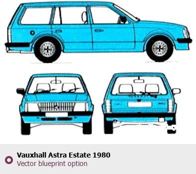 Raster blueprint of the 1980 Vauxhall Astra Estate Wagon. This free downloadable image can be used for graphic projects, digital design, and 3D modeling. The file provides accurate exterior proportions of the vehicle. Model year: 1980. Body type: Wagon.