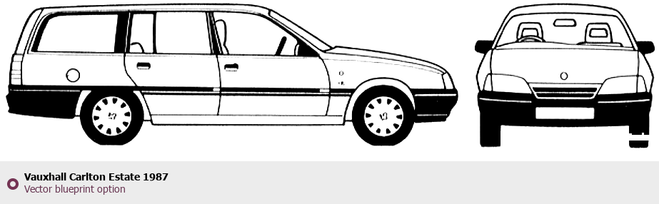 Raster blueprint of the 1987 Vauxhall Carlton Estate Wagon. This free downloadable image can be used for graphic projects, digital design, and 3D modeling. The file provides accurate exterior proportions of the vehicle. Model year: 1987. Body type: Wagon.