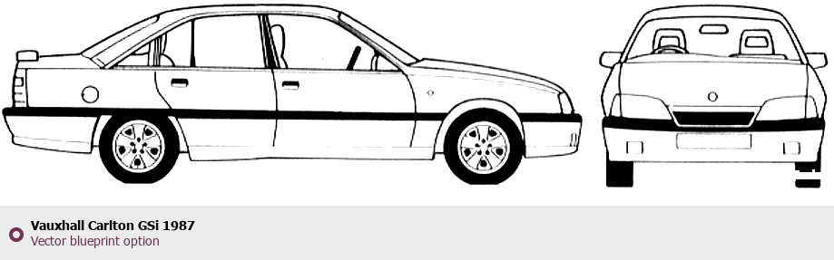 Raster blueprint of the 1987 Vauxhall Carlton GSi Tag. This free downloadable image can be used for graphic projects, digital design, and 3D modeling. The file provides accurate exterior proportions of the vehicle. Model year: 1987. Body type: Tag.