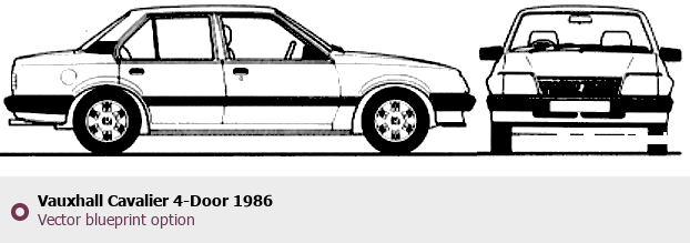 Raster blueprint of the 1986 Vauxhall Cavalier 4-Door Tag. This free downloadable image can be used for graphic projects, digital design, and 3D modeling. The file provides accurate exterior proportions of the vehicle. Model year: 1986. Body type: Tag.
