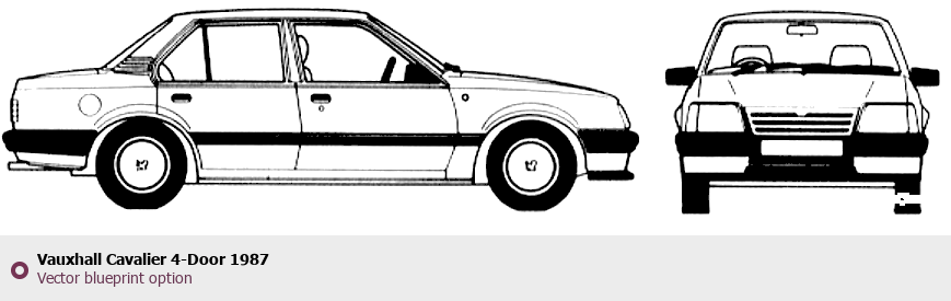 Raster blueprint of the 1987 Vauxhall Cavalier 4-Door Tag. This free downloadable image can be used for graphic projects, digital design, and 3D modeling. The file provides accurate exterior proportions of the vehicle. Model year: 1987. Body type: Tag.