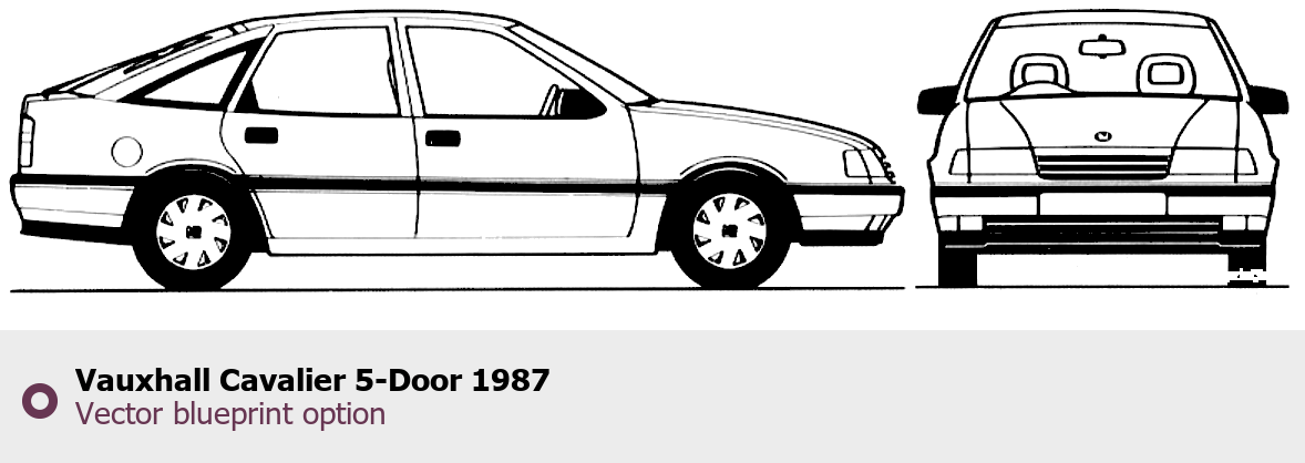 Raster blueprint of the 1987 Vauxhall Cavalier 5-Door Tag. This free downloadable image can be used for graphic projects, digital design, and 3D modeling. The file provides accurate exterior proportions of the vehicle. Model year: 1987. Body type: Tag.
