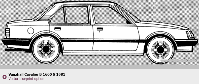 Raster blueprint of the 1981 Vauxhall Cavalier B 1600 S Tag. This free downloadable image can be used for graphic projects, digital design, and 3D modeling. The file provides accurate exterior proportions of the vehicle. Model year: 1981. Body type: Tag.