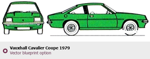 Raster blueprint of the 1979 Vauxhall Cavalier Coupe Coupe. This free downloadable image can be used for graphic projects, digital design, and 3D modeling. The file provides accurate exterior proportions of the vehicle. Model year: 1979. Body type: Coupe.