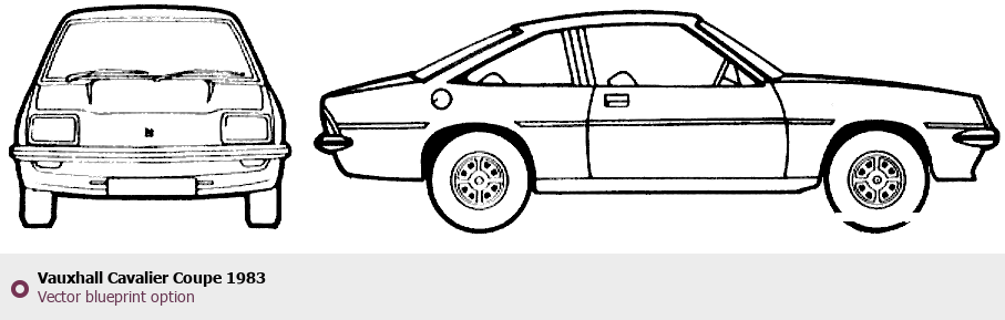 Raster blueprint of the 1983 Vauxhall Cavalier Coupe Coupe. This free downloadable image can be used for graphic projects, digital design, and 3D modeling. The file provides accurate exterior proportions of the vehicle. Model year: 1983. Body type: Coupe.