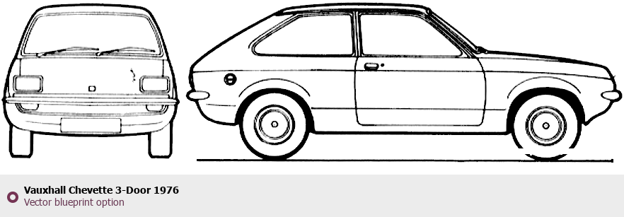 Raster blueprint of the 1976 Vauxhall Chevette 3-Door Tag. This free downloadable image can be used for graphic projects, digital design, and 3D modeling. The file provides accurate exterior proportions of the vehicle. Model year: 1976. Body type: Tag.