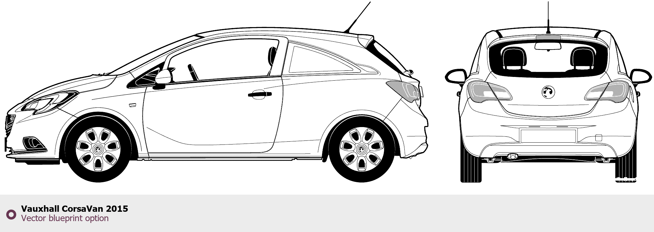 Raster blueprint of the 2015 Vauxhall CorsaVan Hatchback. This free downloadable image can be used for graphic projects, digital design, and 3D modeling. The file provides accurate exterior proportions of the vehicle. Model year: 2015. Body type: Hatchback.