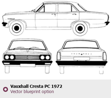 Raster blueprint of the 1972 Vauxhall Cresta PC Tag. This free downloadable image can be used for graphic projects, digital design, and 3D modeling. The file provides accurate exterior proportions of the vehicle. Model year: 1972. Body type: Tag.