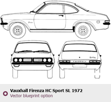Raster blueprint of the 1972 Vauxhall Firenza HC Sport SL Tag. This free downloadable image can be used for graphic projects, digital design, and 3D modeling. The file provides accurate exterior proportions of the vehicle. Model year: 1972. Body type: Tag.