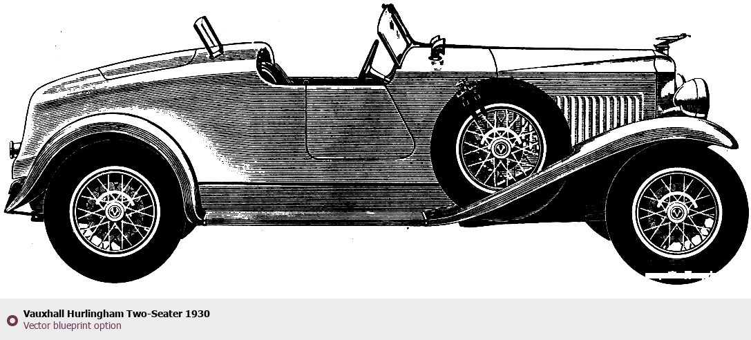 Raster blueprint of the 1930 Vauxhall Hurlingham Two-Seater Tag. This free downloadable image can be used for graphic projects, digital design, and 3D modeling. The file provides accurate exterior proportions of the vehicle. Model year: 1930. Body type: Tag.