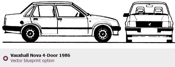 Raster blueprint of the 1986 Vauxhall Nova 4-Door Hatchback. This free downloadable image can be used for graphic projects, digital design, and 3D modeling. The file provides accurate exterior proportions of the vehicle. Model year: 1986. Body type: Hatchback.