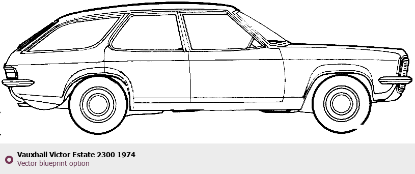 Raster blueprint of the 1974 Vauxhall Victor Estate 2300 Wagon. This free downloadable image can be used for graphic projects, digital design, and 3D modeling. The file provides accurate exterior proportions of the vehicle. Model year: 1974. Body type: Wagon.