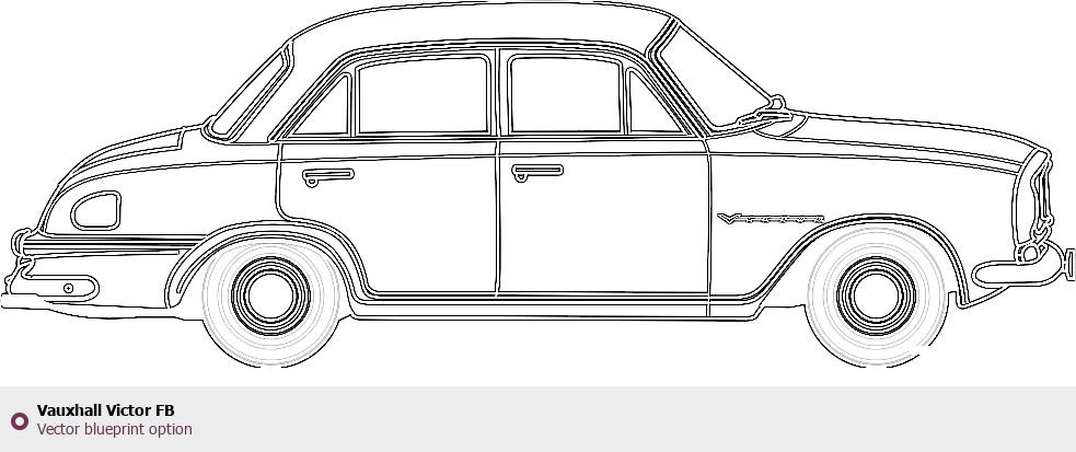 Raster blueprint of the Vauxhall Victor FB Tag. This free downloadable image can be used for graphic projects, digital design, and 3D modeling. The file provides accurate exterior proportions of the vehicle. Body type: Tag.