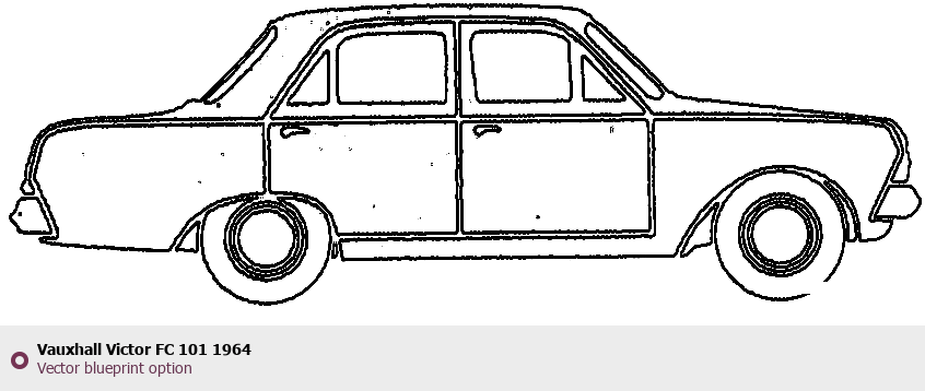 Raster blueprint of the 1964 Vauxhall Victor FC 101 Tag. This free downloadable image can be used for graphic projects, digital design, and 3D modeling. The file provides accurate exterior proportions of the vehicle. Model year: 1964. Body type: Tag.