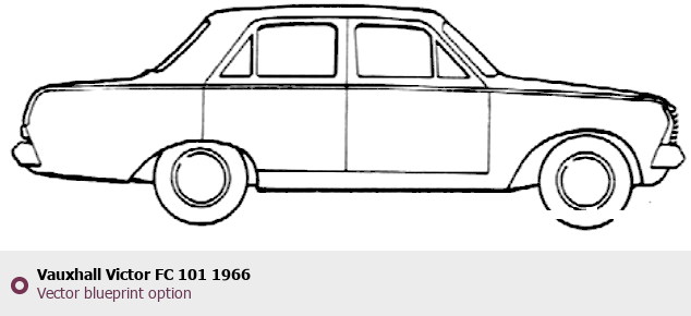 Raster blueprint of the 1966 Vauxhall Victor FC 101 Tag. This free downloadable image can be used for graphic projects, digital design, and 3D modeling. The file provides accurate exterior proportions of the vehicle. Model year: 1966. Body type: Tag.
