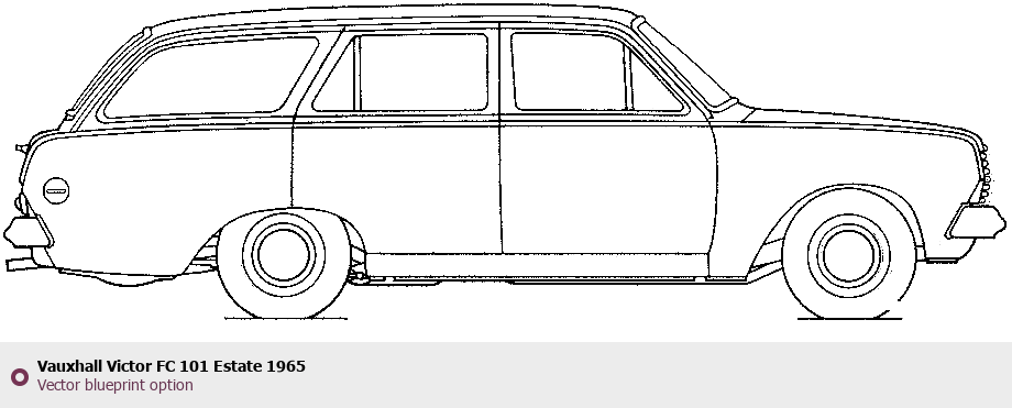 Raster blueprint of the 1965 Vauxhall Victor FC 101 Estate Wagon. This free downloadable image can be used for graphic projects, digital design, and 3D modeling. The file provides accurate exterior proportions of the vehicle. Model year: 1965. Body type: Wagon.