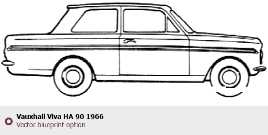Raster blueprint of the 1966 Vauxhall Viva HA 90 Hatchback. This free downloadable image can be used for graphic projects, digital design, and 3D modeling. The file provides accurate exterior proportions of the vehicle. Model year: 1966. Body type: Hatchback.