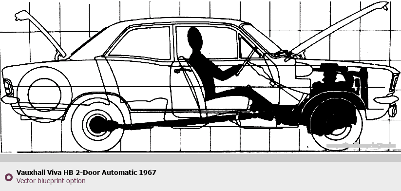 Raster blueprint of the 1967 Vauxhall Viva HB 2-Door Automatic Hatchback. This free downloadable image can be used for graphic projects, digital design, and 3D modeling. The file provides accurate exterior proportions of the vehicle. Model year: 1967. Body type: Hatchback.