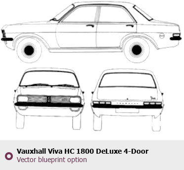 Raster blueprint of the 1972 Vauxhall Viva HC 1800 DeLuxe 4-Door Hatchback. This free downloadable image can be used for graphic projects, digital design, and 3D modeling. The file provides accurate exterior proportions of the vehicle. Model year: 1972. Body type: Hatchback.