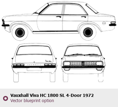 Raster blueprint of the 1972 Vauxhall Viva HC 1800 SL 4-Door Hatchback. This free downloadable image can be used for graphic projects, digital design, and 3D modeling. The file provides accurate exterior proportions of the vehicle. Model year: 1972. Body type: Hatchback.