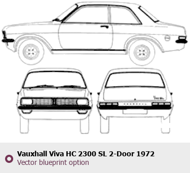 Raster blueprint of the 1972 Vauxhall Viva HC 2300 SL 2-Door Hatchback. This free downloadable image can be used for graphic projects, digital design, and 3D modeling. The file provides accurate exterior proportions of the vehicle. Model year: 1972. Body type: Hatchback.
