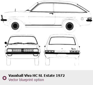 Raster blueprint of the 1972 Vauxhall Viva HC SL Estate Hatchback. This free downloadable image can be used for graphic projects, digital design, and 3D modeling. The file provides accurate exterior proportions of the vehicle. Model year: 1972. Body type: Hatchback.