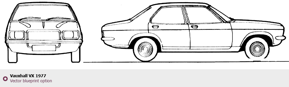 Raster blueprint of the 1977 Vauxhall VX Tag. This free downloadable image can be used for graphic projects, digital design, and 3D modeling. The file provides accurate exterior proportions of the vehicle. Model year: 1977. Body type: Tag.