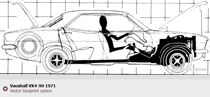 Raster blueprint of the 1971 Vauxhall VX4-90 Tag. This free downloadable image can be used for graphic projects, digital design, and 3D modeling. The file provides accurate exterior proportions of the vehicle. Model year: 1971. Body type: Tag.