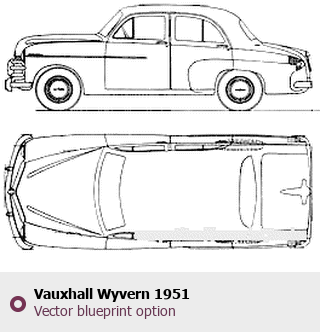 Raster blueprint of the 1951 Vauxhall Wyvern Tag. This free downloadable image can be used for graphic projects, digital design, and 3D modeling. The file provides accurate exterior proportions of the vehicle. Model year: 1951. Body type: Tag.