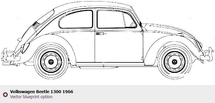 Raster blueprint of the 1966 Volkswagen Beetle 1300 Tag. This free downloadable image can be used for graphic projects, digital design, and 3D modeling. The file provides accurate exterior proportions of the vehicle. Model year: 1966. Body type: Tag.