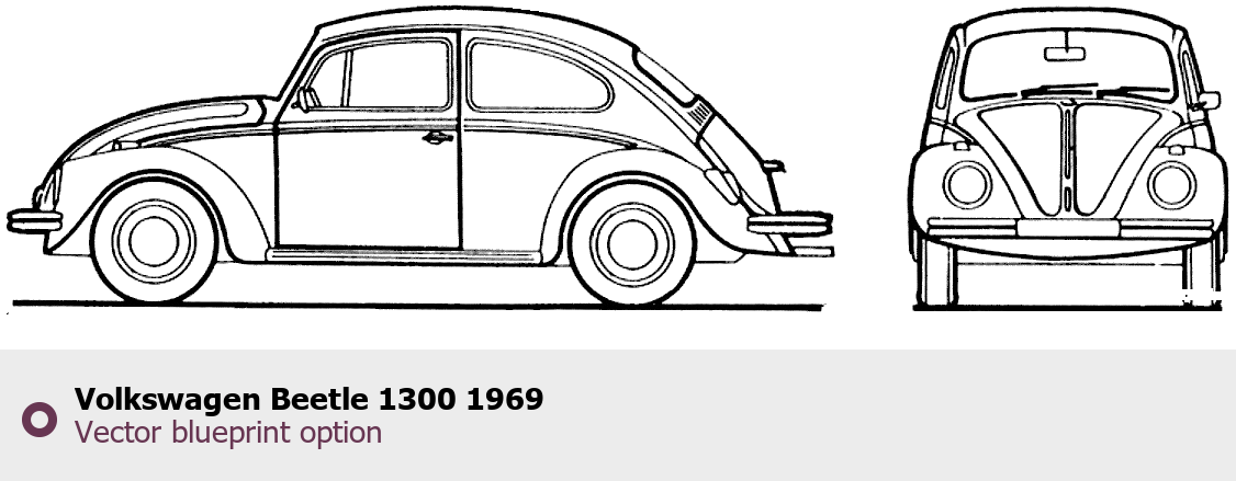 Raster blueprint of the 1969 Volkswagen Beetle 1300 Tag. This free downloadable image can be used for graphic projects, digital design, and 3D modeling. The file provides accurate exterior proportions of the vehicle. Model year: 1969. Body type: Tag.