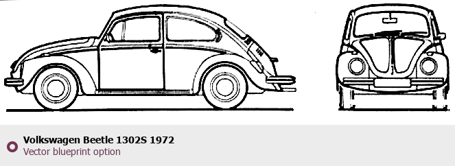 Raster blueprint of the 1972 Volkswagen Beetle 1302S Tag. This free downloadable image can be used for graphic projects, digital design, and 3D modeling. The file provides accurate exterior proportions of the vehicle. Model year: 1972. Body type: Tag.