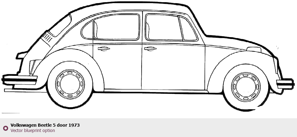 Raster blueprint of the 1973 Volkswagen Beetle 5 door Tag. This free downloadable image can be used for graphic projects, digital design, and 3D modeling. The file provides accurate exterior proportions of the vehicle. Model year: 1973. Body type: Tag.