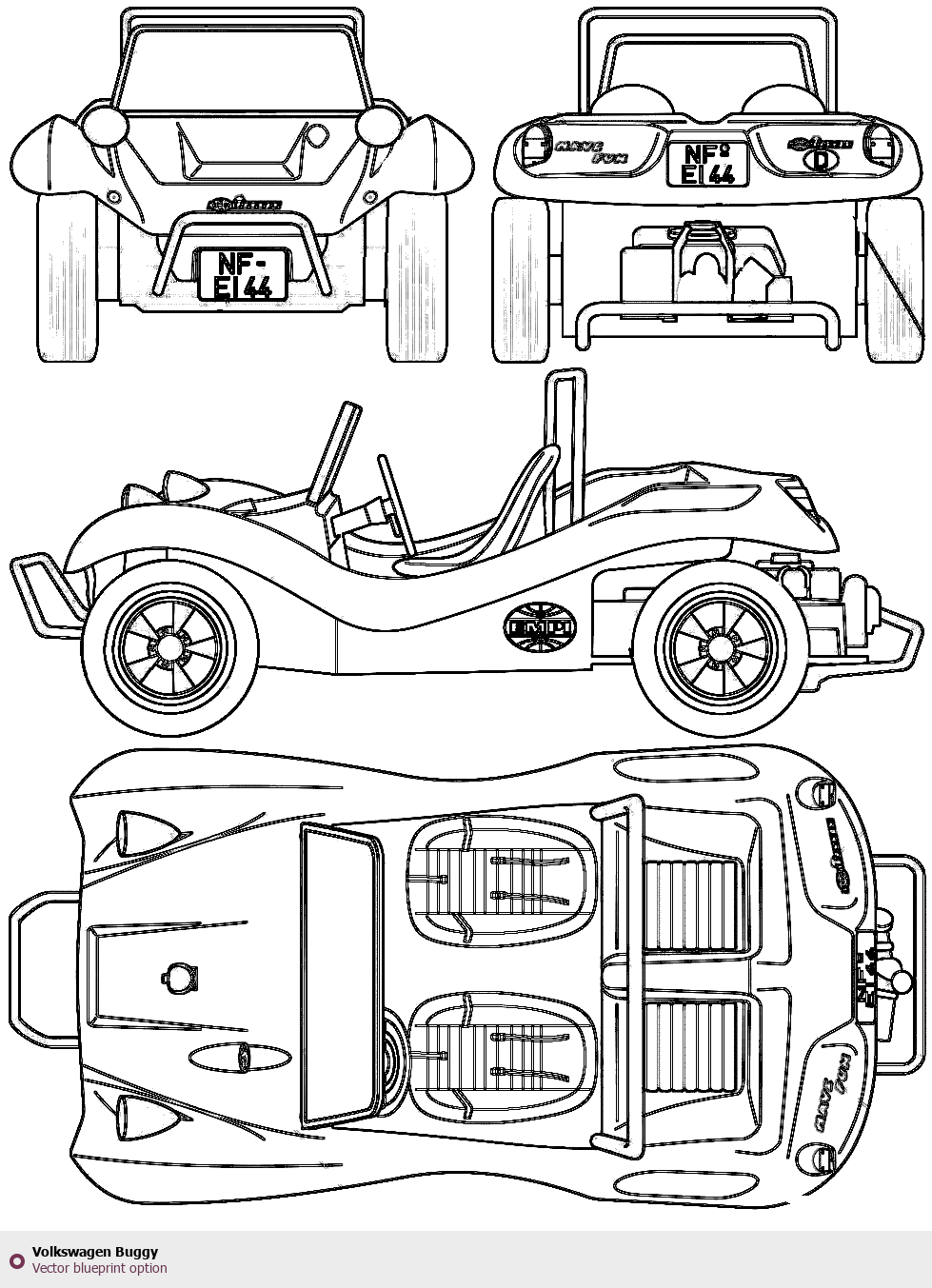 Raster blueprint of the Volkswagen Buggy Tag. This free downloadable image can be used for graphic projects, digital design, and 3D modeling. The file provides accurate exterior proportions of the vehicle. Body type: Tag.