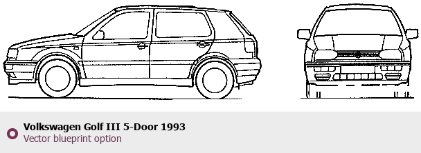 Raster blueprint of the 1993 Volkswagen Golf III 5-Door Tag. This free downloadable image can be used for graphic projects, digital design, and 3D modeling. The file provides accurate exterior proportions of the vehicle. Model year: 1993. Body type: Tag.