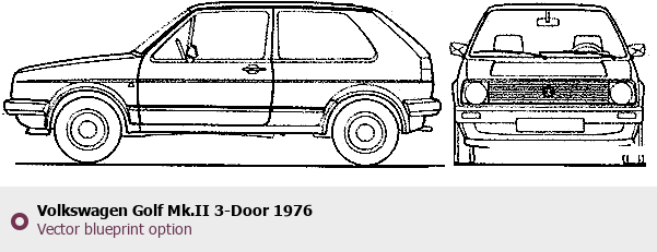 Raster blueprint of the 1976 Volkswagen Golf Mk.II 3-Door Tag. This free downloadable image can be used for graphic projects, digital design, and 3D modeling. The file provides accurate exterior proportions of the vehicle. Model year: 1976. Body type: Tag.