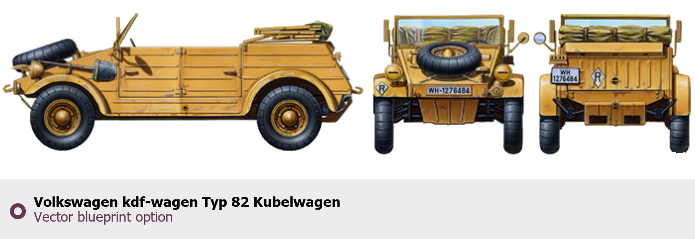 Raster blueprint of the Volkswagen kdf-wagen Typ 82 Kubelwagen Tag. This free downloadable image can be used for graphic projects, digital design, and 3D modeling. The file provides accurate exterior proportions of the vehicle. Body type: Tag.