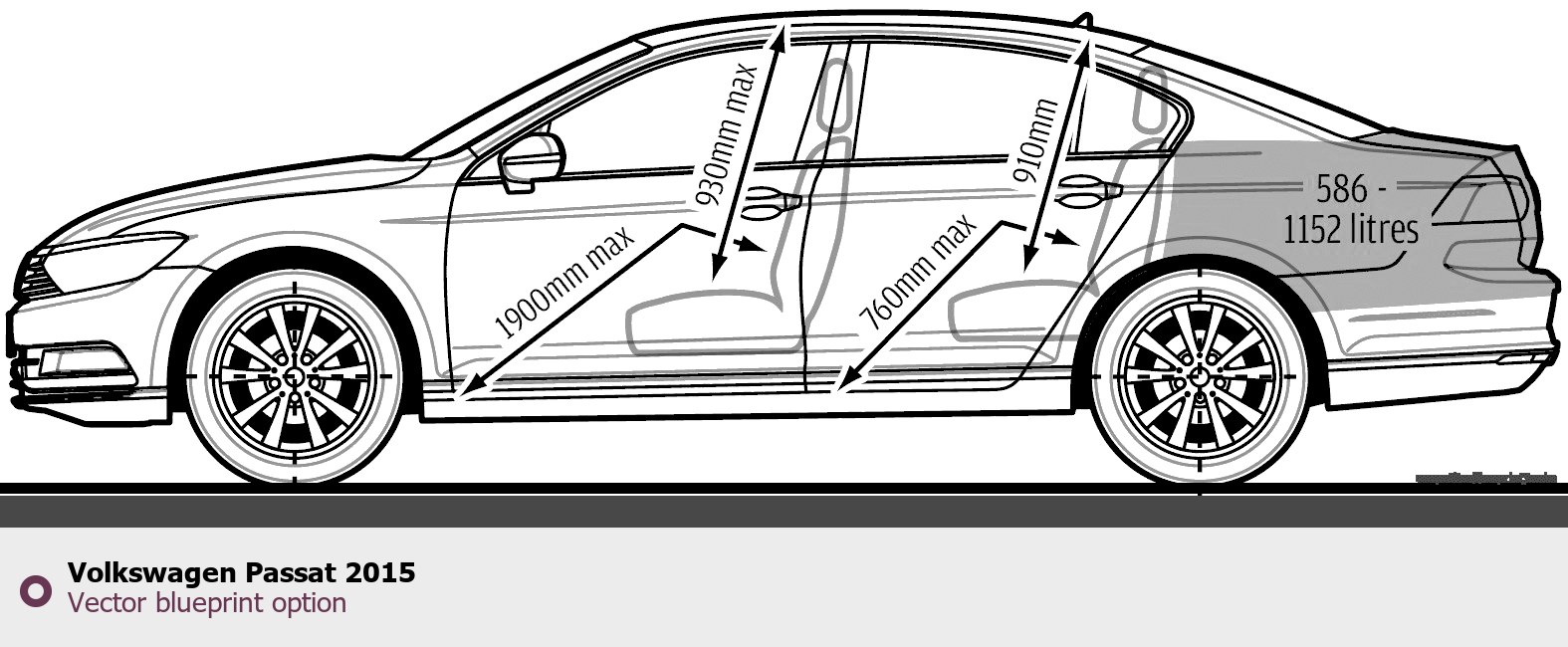 Raster blueprint of the 2015 Volkswagen Passat Tag. This free downloadable image can be used for graphic projects, digital design, and 3D modeling. The file provides accurate exterior proportions of the vehicle. Model year: 2015. Body type: Tag.