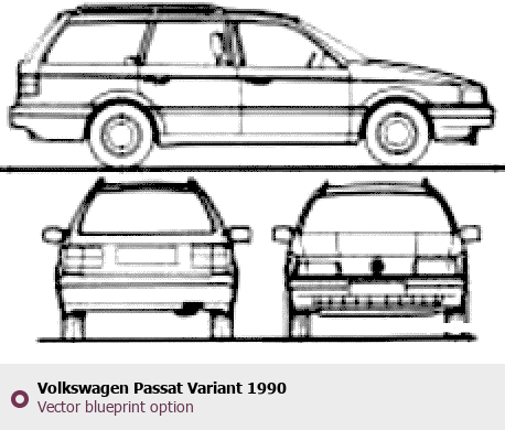 Raster blueprint of the 1990 Volkswagen Passat Variant Wagon. This free downloadable image can be used for graphic projects, digital design, and 3D modeling. The file provides accurate exterior proportions of the vehicle. Model year: 1990. Body type: Wagon.