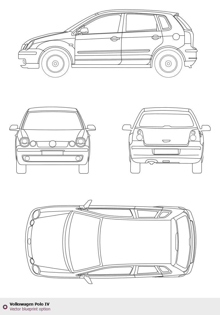 Raster blueprint of the Volkswagen Polo IV Tag. This free downloadable image can be used for graphic projects, digital design, and 3D modeling. The file provides accurate exterior proportions of the vehicle. Body type: Tag.