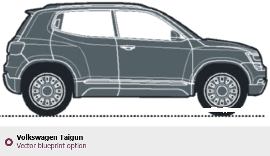 Raster blueprint of the Volkswagen Taigun Tag. This free downloadable image can be used for graphic projects, digital design, and 3D modeling. The file provides accurate exterior proportions of the vehicle. Body type: Tag.