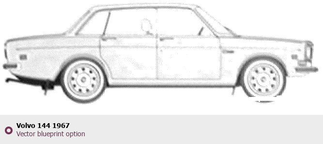 Raster blueprint of the 1967 Volvo 144 Tag. This free downloadable image can be used for graphic projects, digital design, and 3D modeling. The file provides accurate exterior proportions of the vehicle. Model year: 1967. Body type: Tag.