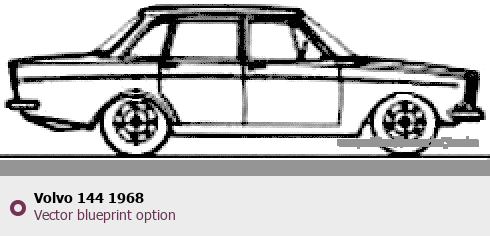 Raster blueprint of the 1968 Volvo 144 Tag. This free downloadable image can be used for graphic projects, digital design, and 3D modeling. The file provides accurate exterior proportions of the vehicle. Model year: 1968. Body type: Tag.